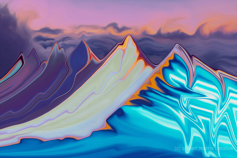 Some snippets about me. If you are reading this, I would like to thank you in advance for lending some time to learning a bit more about myself and my art. The pleasure is all mine. I am Shawn Morris. To me creativity and being creative is the essence of life and interconnected to how we live it. I have come to find a connection to timelessness now and again when befriending the creative process with genuine mystical wonder. Magic happen in the spaces in between. I see creative endeavours as being tethered intricately to each and every individual’s unique perspective. I believe that everyone has a carte blanche exact matter of fact equal ability when it comes to creativity. Subjective subconscious reality defined. Being creative is a gift that over time can change perspectives in a collective nature. The mastery in the everlasting allure too engaging in a creative way which over time can mature, become more refined and evolved in part to how it continues to call to me. It’s not about being good or bad, its about doing it or not. Art is a way for me to visualize and quantify how I can move in a groovy and most often soothing way from point A to point B and inevitably to point Z. I am a contemporary artist, albeit a photographer first who is also a late to the table academic and author from Nelson British Columbia, Canada. I am spellbound and invigorated daily by the endless gift of Mother Nature’s life force that I am so lucky to feel in all of its abundance in the mountains I live nested amongst. I am captivated by nature in general, open spaces, unhurried existences, and vibrancies that sometimes exist just beyond the human eye, albeit brought into focus from time to time I find with a distinct verve represented through photography and art. I feel extremely fortunate to come from such a magical place that continues to represent exquisite beauty and feeling in it landscapes and also in the people who live here. Today’s technologies, combined with seemingly endless different mediums and endless possibilities of arrangements, interwoven with megatudes of ingenious applications makes right now such an exciting time to be an artist. I love the precision that is the result of masterful screen printing. Crisp clean gradients that display definitive and distinguished lines that i find enhance the distinctiveness and vigour of each colour. I remember seeing Roy Henry Vickers work for the first time and was immediately transfixed by its vividness and balance that was so clean and linear and it resulted in feeling that i was a part of something more in an intimately interconnected way. I strive to embody a sense of calm and balance in my work. I like to include suggestive elements that I hope can induce feeling and thoughts that are calming. I have been told by people that this particular aspect of my art speaks to them in a very personal and meaningful way. I am constantly amazed and wowed each and every time I am privy to someone else’s reaction(s) to my art and that creates a sense of overflowing gratitude and pride for me. It is humbling and an honour to be able to see through another persons eyes and even their minds eye in real time if they happen to find a connection with my art. My hope is that the suggestive inclusions in much of my work will encourage the viewer to see in a deeper way that is often just beyond what they initially think they are supposed to be seeing. I think it is innate for people to want to understand things through being able to define them. If my art persuades or initiates thoughts that induce emotions or feelings, perhaps different in the same for each individual viewer, then I would say this accomplishment defies definition while additionally creating its own unique purpose, one that can be very personal and at the same time openly shared. When and if this transpires, the connections can prove to be profound in many different ways. When imagination takes flight from observing something tangible in the form of art, what transpires, I would describe as being an interactive synaptic ah ha moment that can take hold of people while simultaneously propelling them in different directions in time and space. This sort of experience can also invigorate a persons senses that I equate to being able to let go and hang on at the same time. Little moments such as these I see in fact as being big moments that can move people in ways that can prove to be ever-lasting and transformative. I am forever humbled and honoured when people, especially friends, respond in a positive way to my art. I love creation, creativity, creatives, and for me, the freedom and timelessness I get to experience here and there through my creative endeavours. Everything after the fact, is just an incredible bonus. GRATEFUL, Shawn